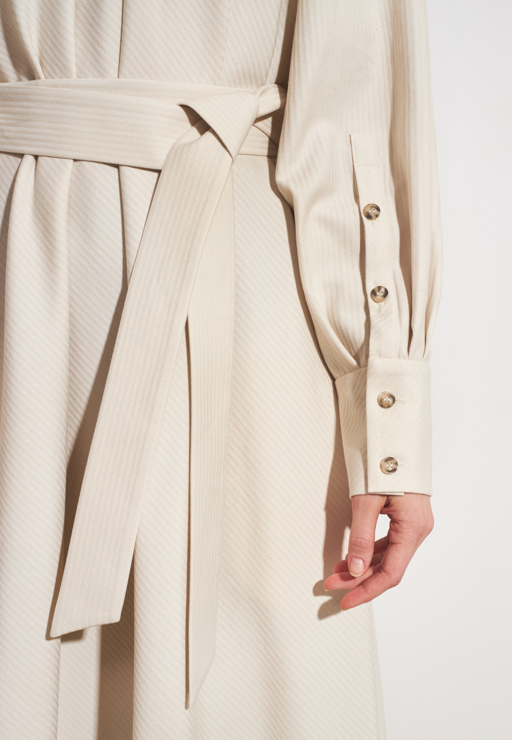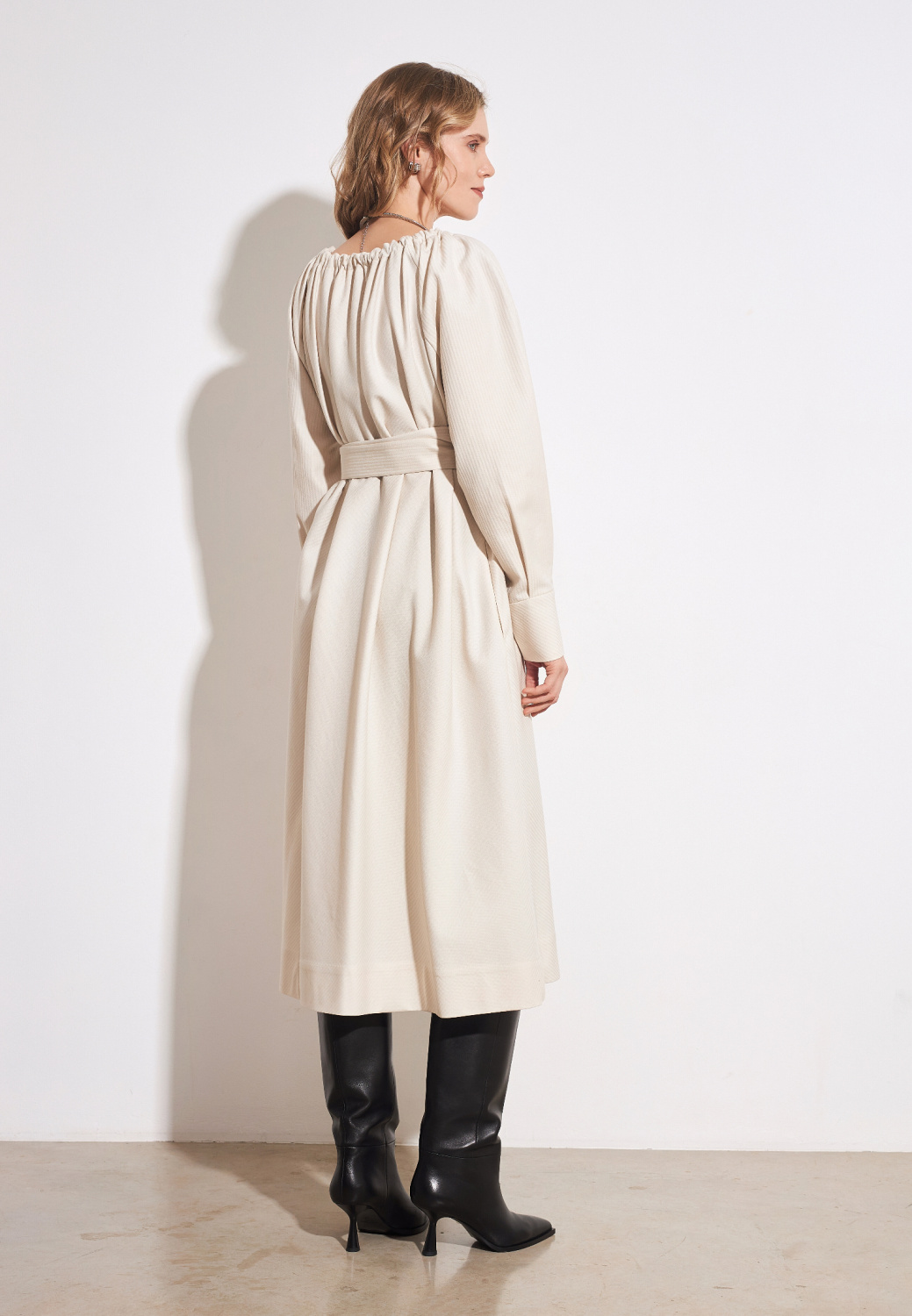 Платье с длинным рукавом идеально подойдет для повседневной носки. Материал со 100% содержанием шерсти способен отлично сохранять тепло, при этом гигроскопичен  и пропускает воздух.Эластичную горловину можно приспустить на плечи и подчеркнуть ключицы.