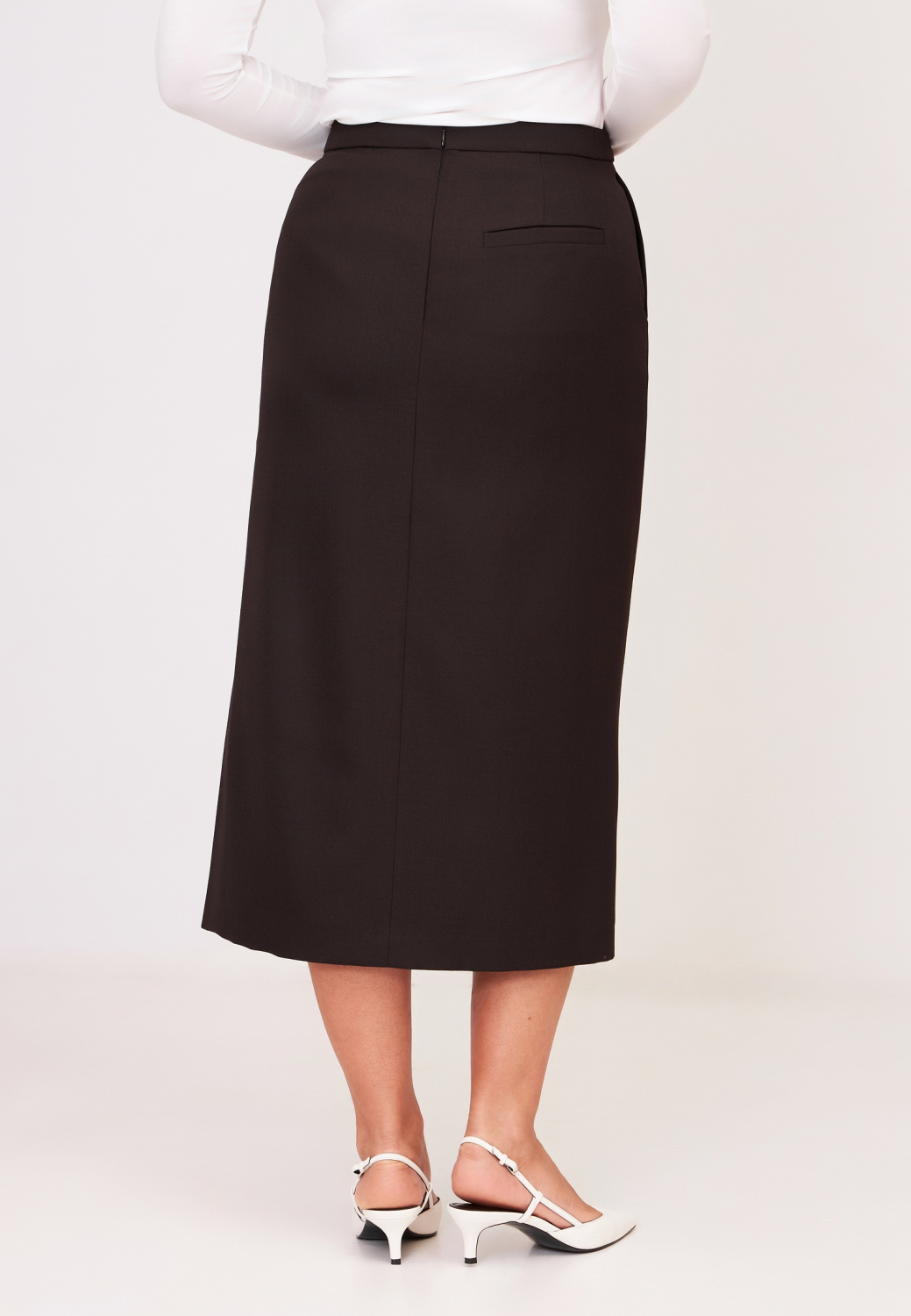 Шоколадная юбка миди с разрезом