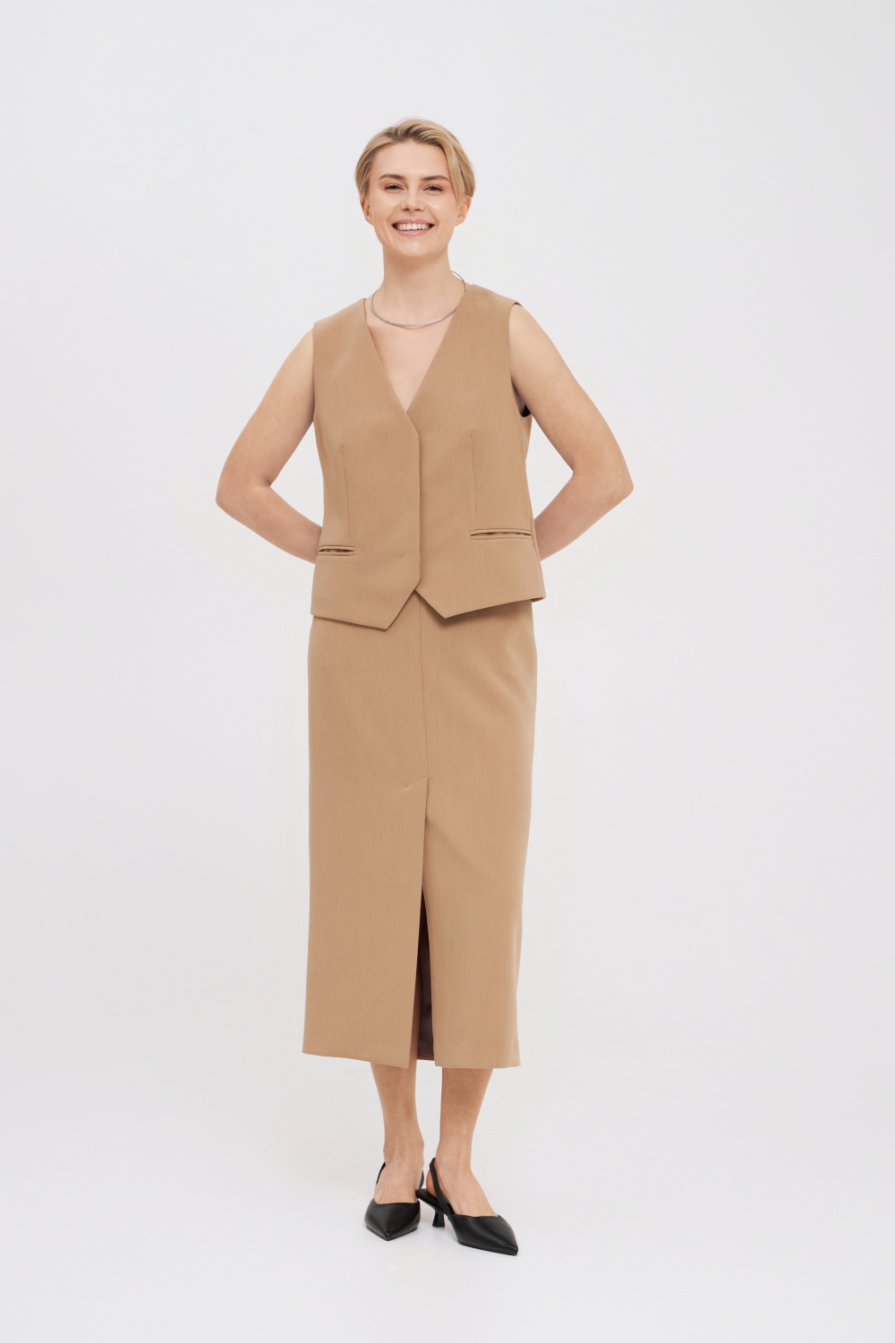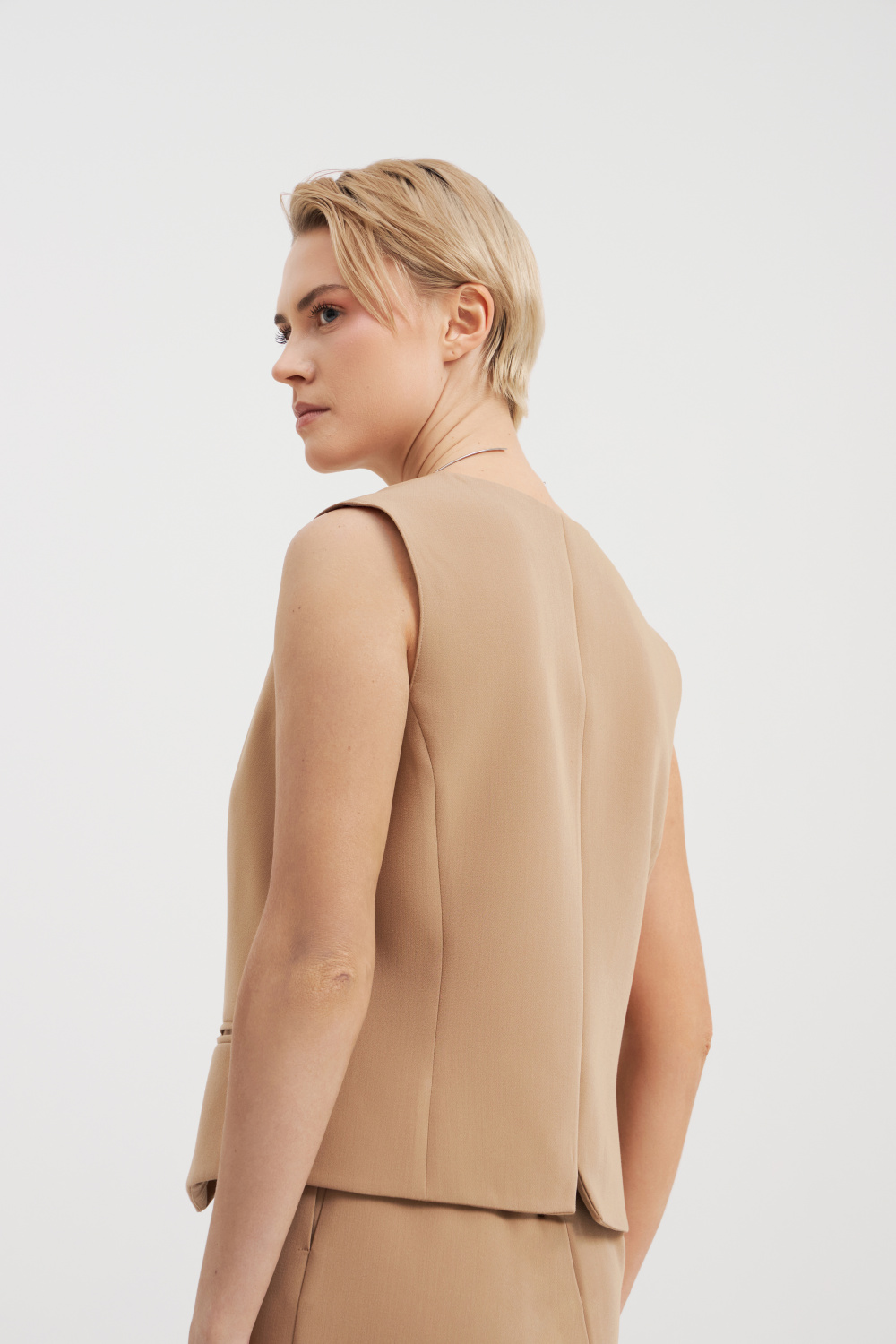 Бежевый жилет со скрытыми пуговицами